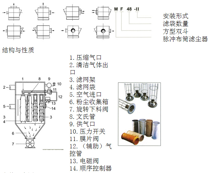 含塵氣流從進氣口進入下箱體后,部分沉降,輕微粉塵浮動時被濾袋阻留,凈化空氣透過濾袋,經文氏管進入上箱體,從出氣口排出。